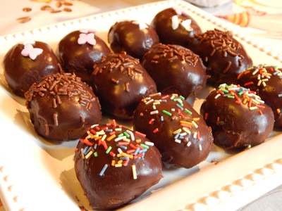 - A fehér csokit felolvasztjuk és óvatosan a tojások tetejére kenjük. Tetejét megszórjuk tortadarával.